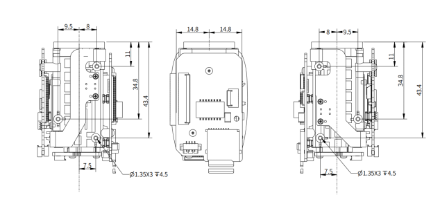 Portul Ethernet 4pin, portul 6pin Power & UART , 5pin Port audio. |