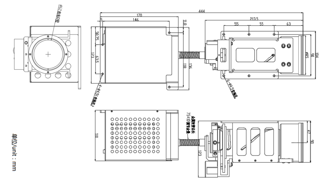 | Unghiul fasciculului laser | Unghi îndepărtat 0,3°, Distanța efectivă> 3000m, Diametrul punctului fasciculului <φ16m |